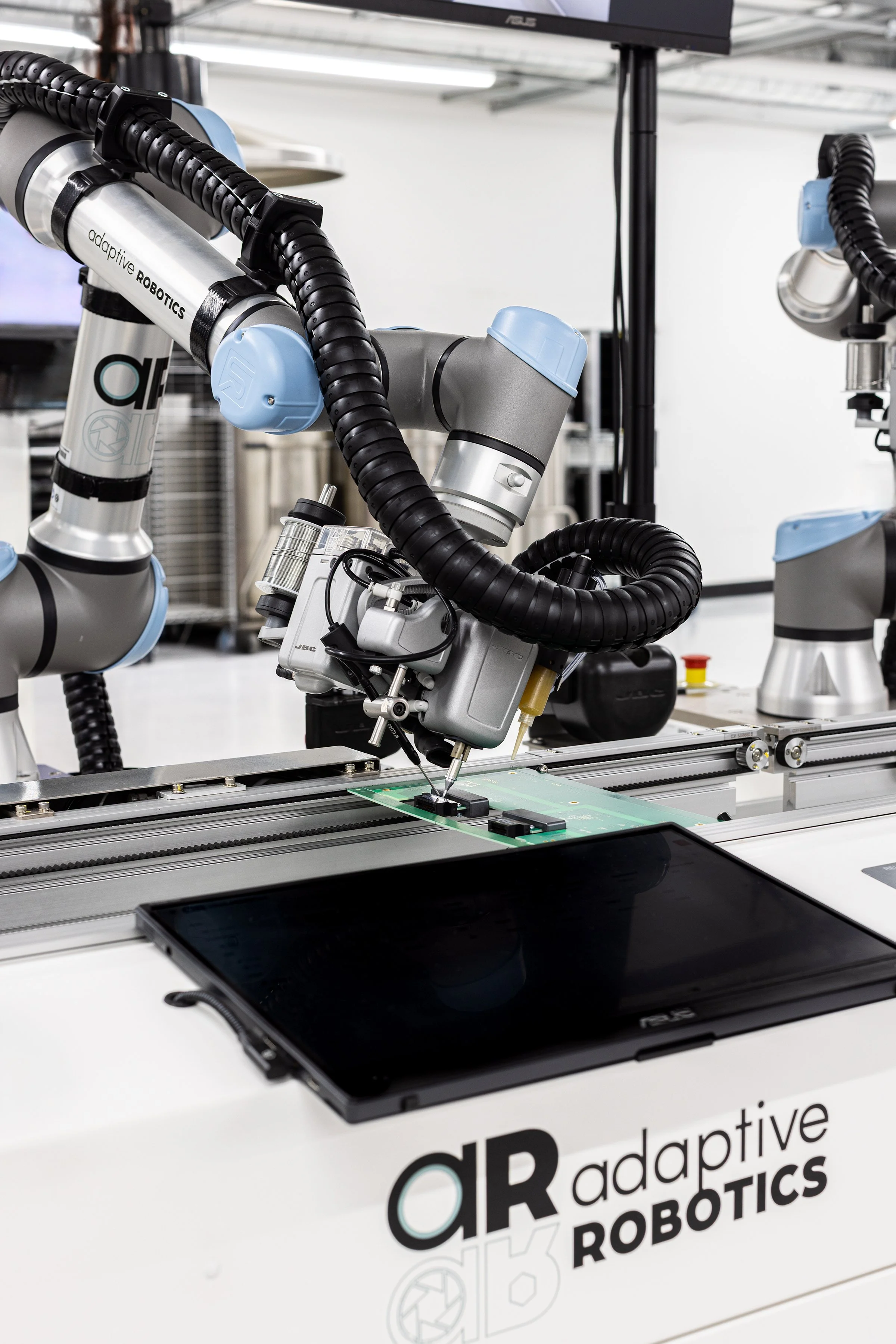 Using a six-axis Cobot and a cutting-edge AI vision system, the SB-1 can replicate complex human soldering processes and monitor them in real time for enhanced quality control.